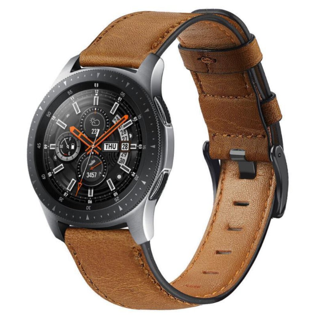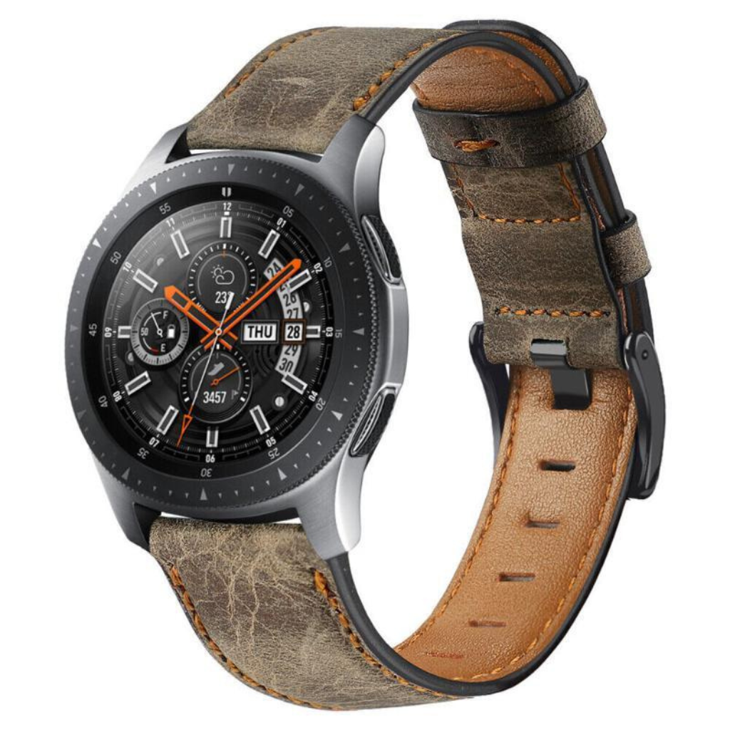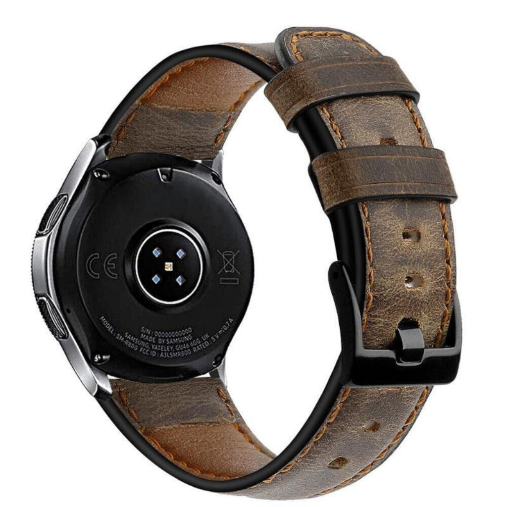 Das Heritage-Lederarmband wertet Ihre Samsung Galaxy Watch mit authentischer Vollnarbenlederverarbeitung und einem klassischen Schnallendesign auf, das nie aus der Mode kommt. Das weiche, flexible und atmungsaktive Leder entwickelt mit der Zeit eine wunderschöne Patina, die jedes Armband zu einem Unikat macht.